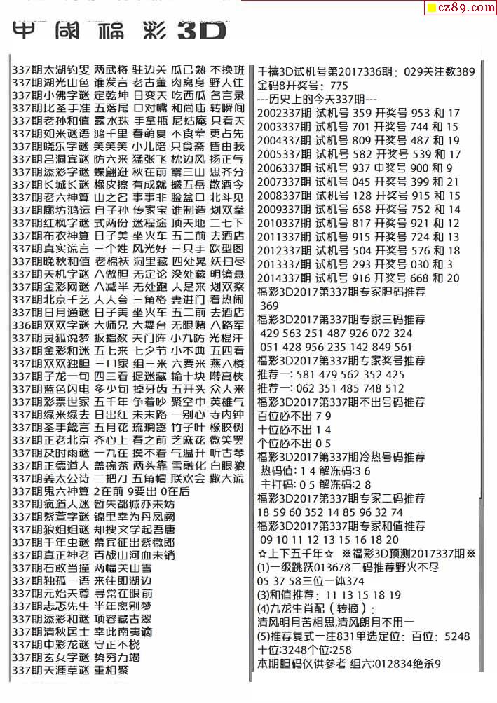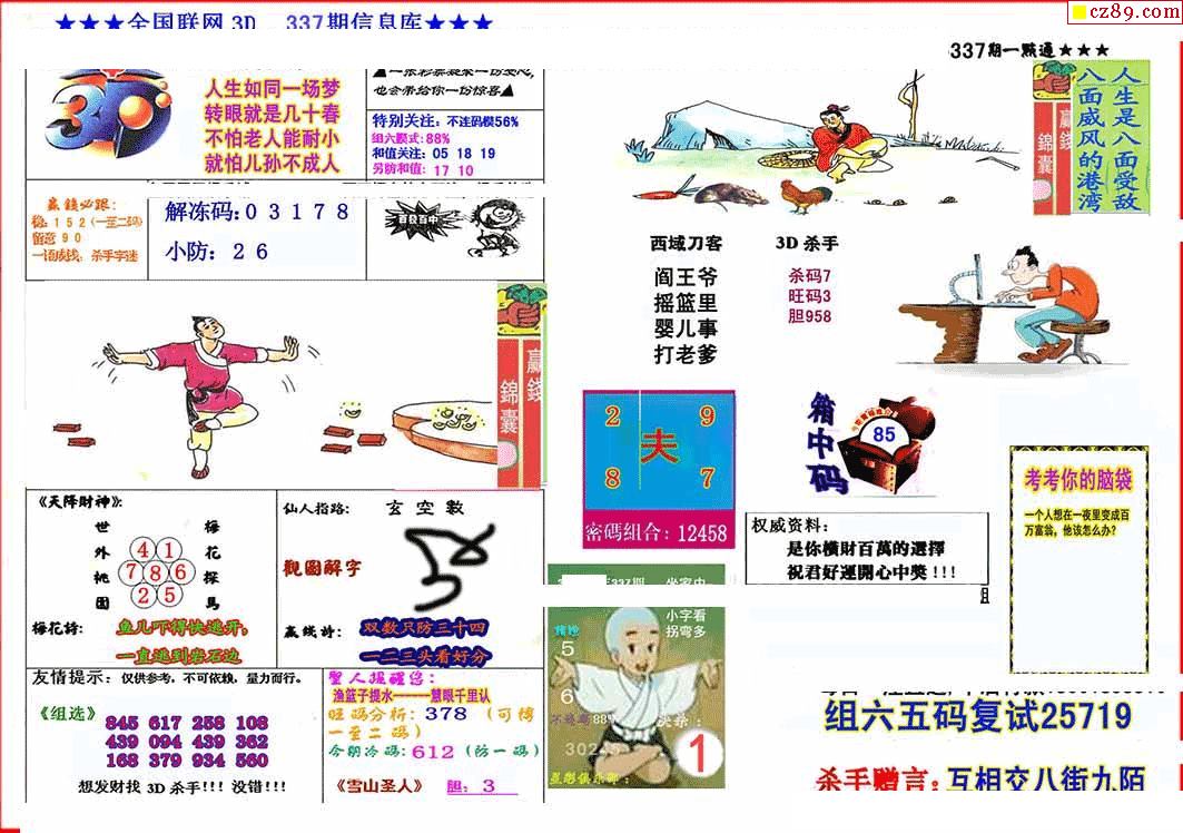 杀手+鑫马快报+字迷汇总25年337期3d图谜